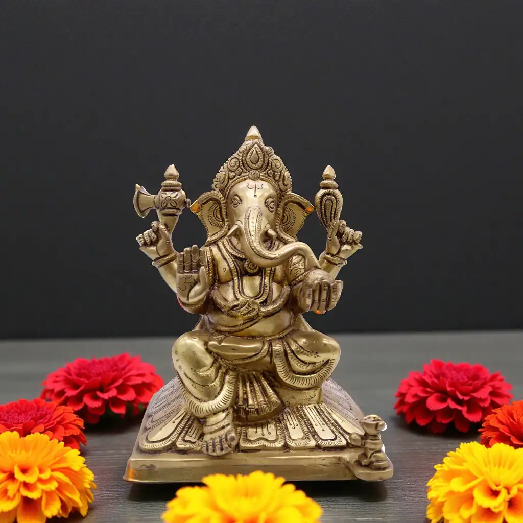 Swayambhu Elegant brass idol of Lord Ganesha seated in blessing posture — a divine symbol of wisdom, prosperity, and new beginnings, perfect for home, temple, or gifting.