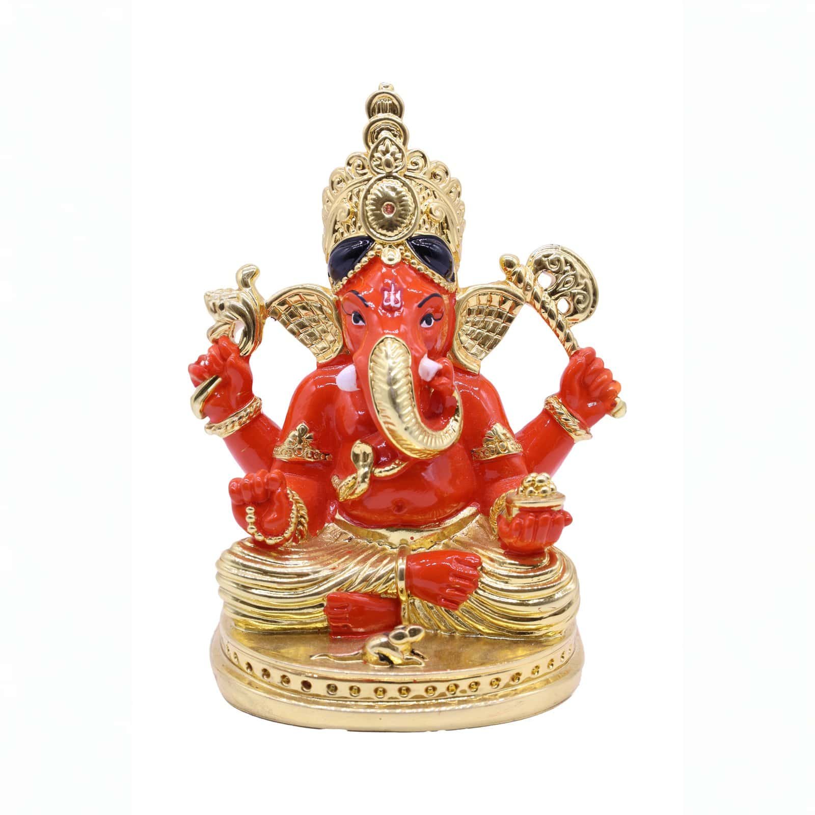 - Vibrant Lord Ganesha Idol: Exquisitely crafted in striking red and radiant gold finish.