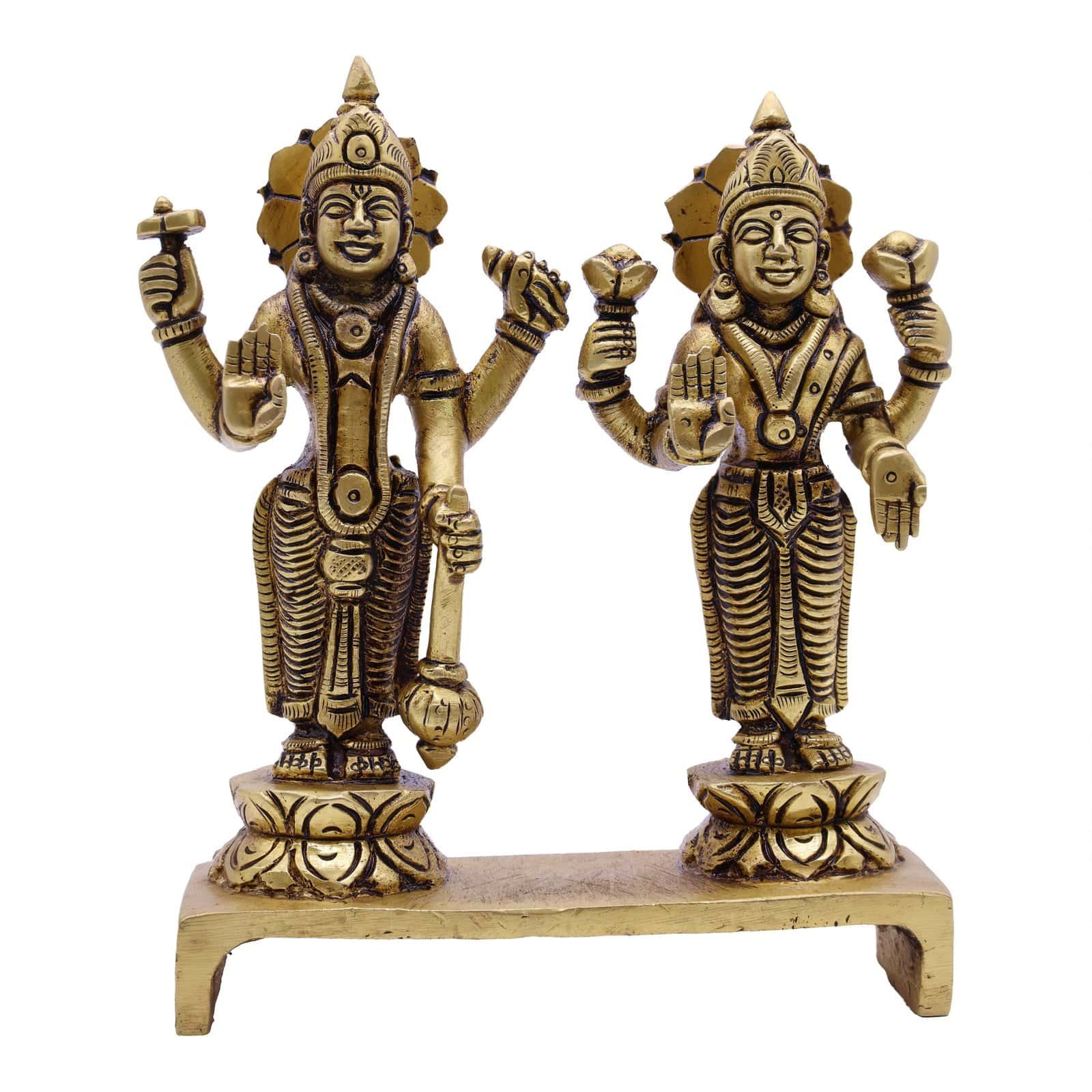 Swayambhu Handcrafted Brass Lakshmi Narayan Idol Set – Symbol of Prosperity & Protection – Ideal for Home Temple & Gifting