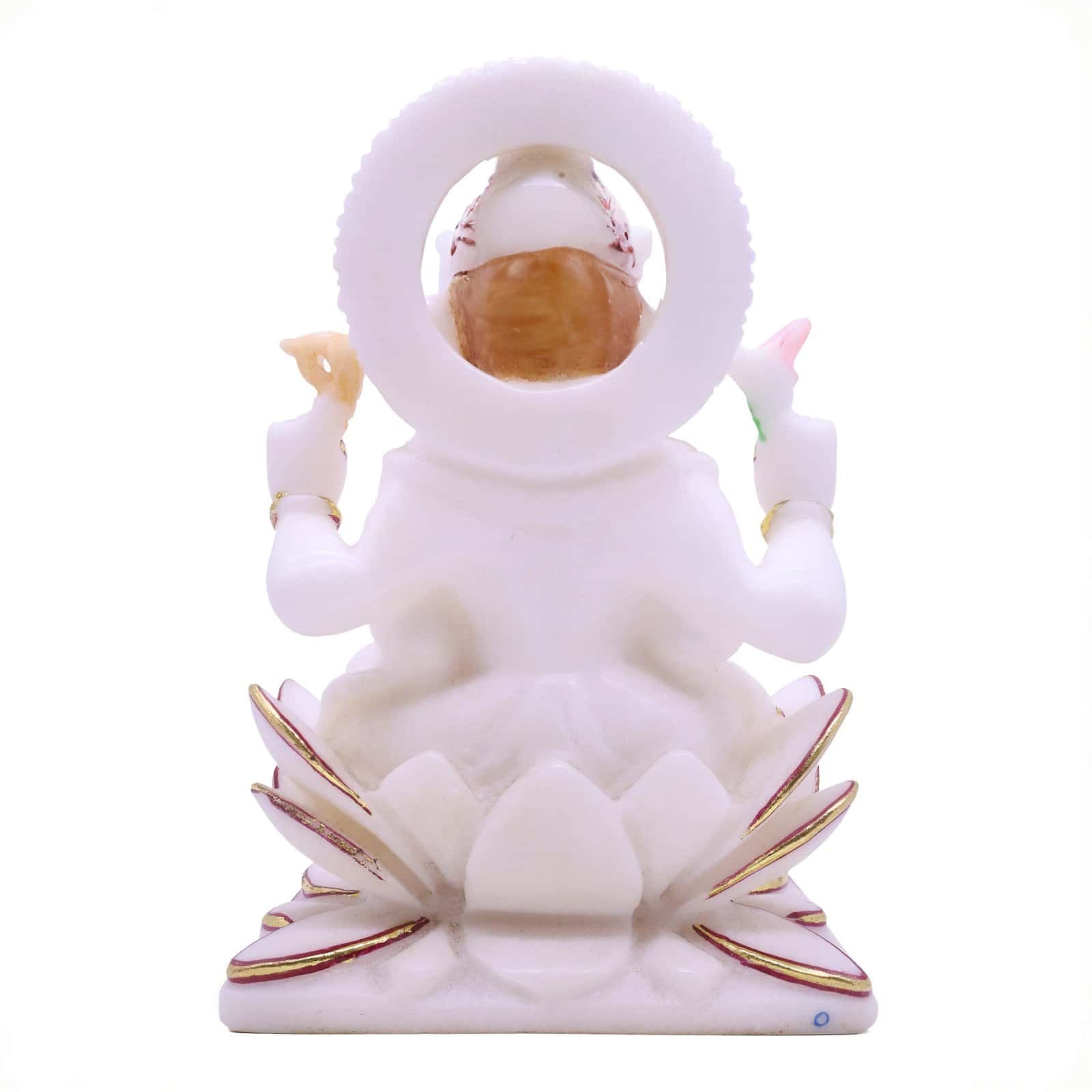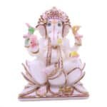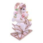nvoke blessings of wisdom, prosperity, and new beginnings with this beautifully handcrafted white marble idol of Lord Ganesha. Adorned with intricate hand-painted accents in pink, gold, and green, the statue captures the serene yet powerful essence of Ganpati Bappa. Seated in a traditional posture with symbolic elements like the modak and broken tusk, the idol radiates positive energy and spiritual charm. Whether placed in a pooja room, office, or living space, this exquisite piece elevates your surroundings and makes for a divine gift during housewarmings, weddings, or festive occasions.