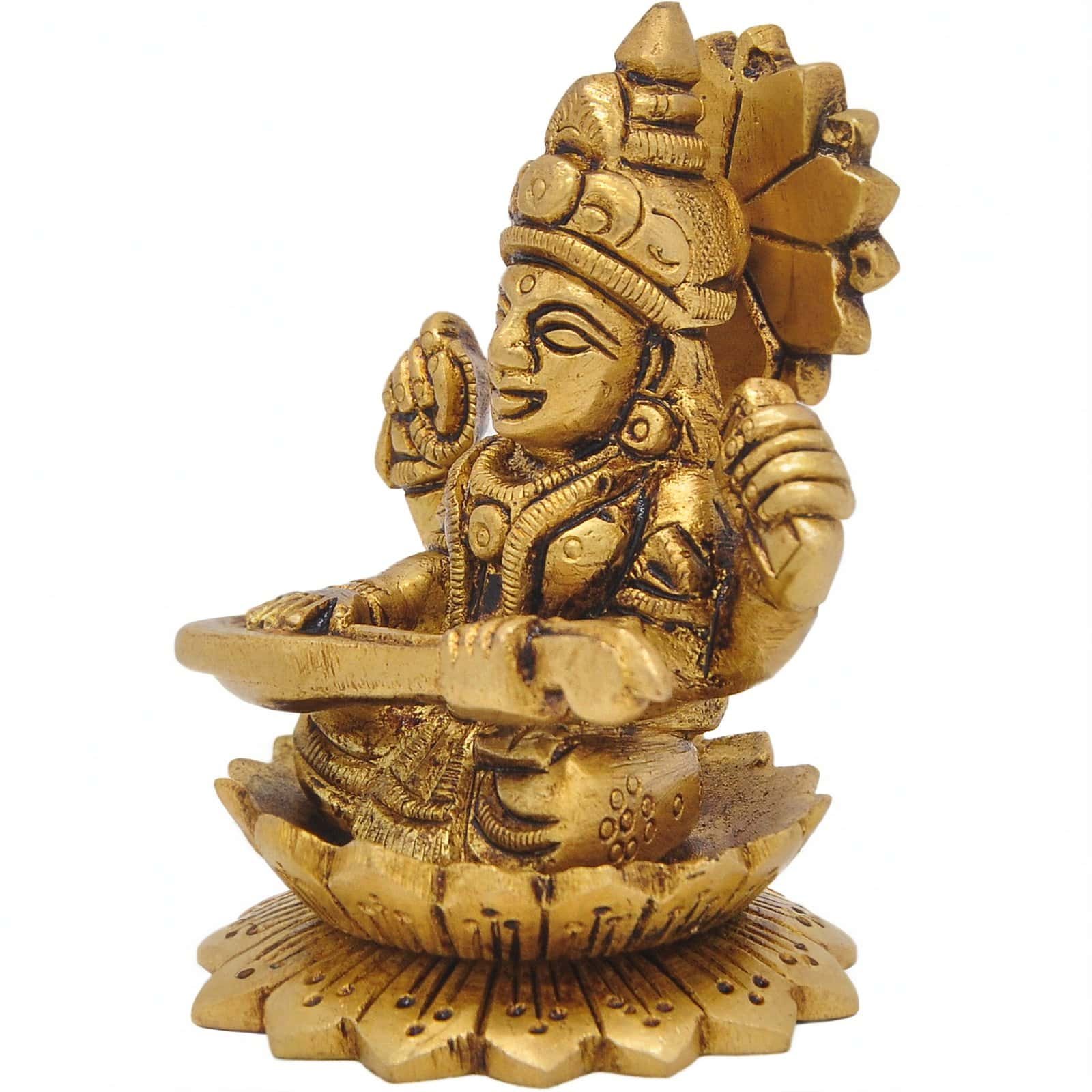 This intricately detailed statue is handcrafted in pure brass with an antique finish, making it a timeless piece of spiritual art. Ideal for your study room, home temple, or as a thoughtful gift for students, teachers, or seekers of knowledge.